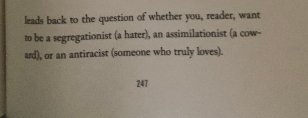 In Stamped from the Beginning: The Definitive History of Racist Ideas in America, Kendi develops a quick categorization of attitudes or stances on racism that is kind of understandable by non-academics. Segregationists uphold the racial hierarchy, Assimilationists include a lot of us who go along to get along and remain silent and complicit; while Antiracists work to actively put in place a world of equality and justice. Antiracism for Kendi is a process, we all have a lot of baggage to work through. But still even this is deep for a literate, thinking, feeling adult to process.
