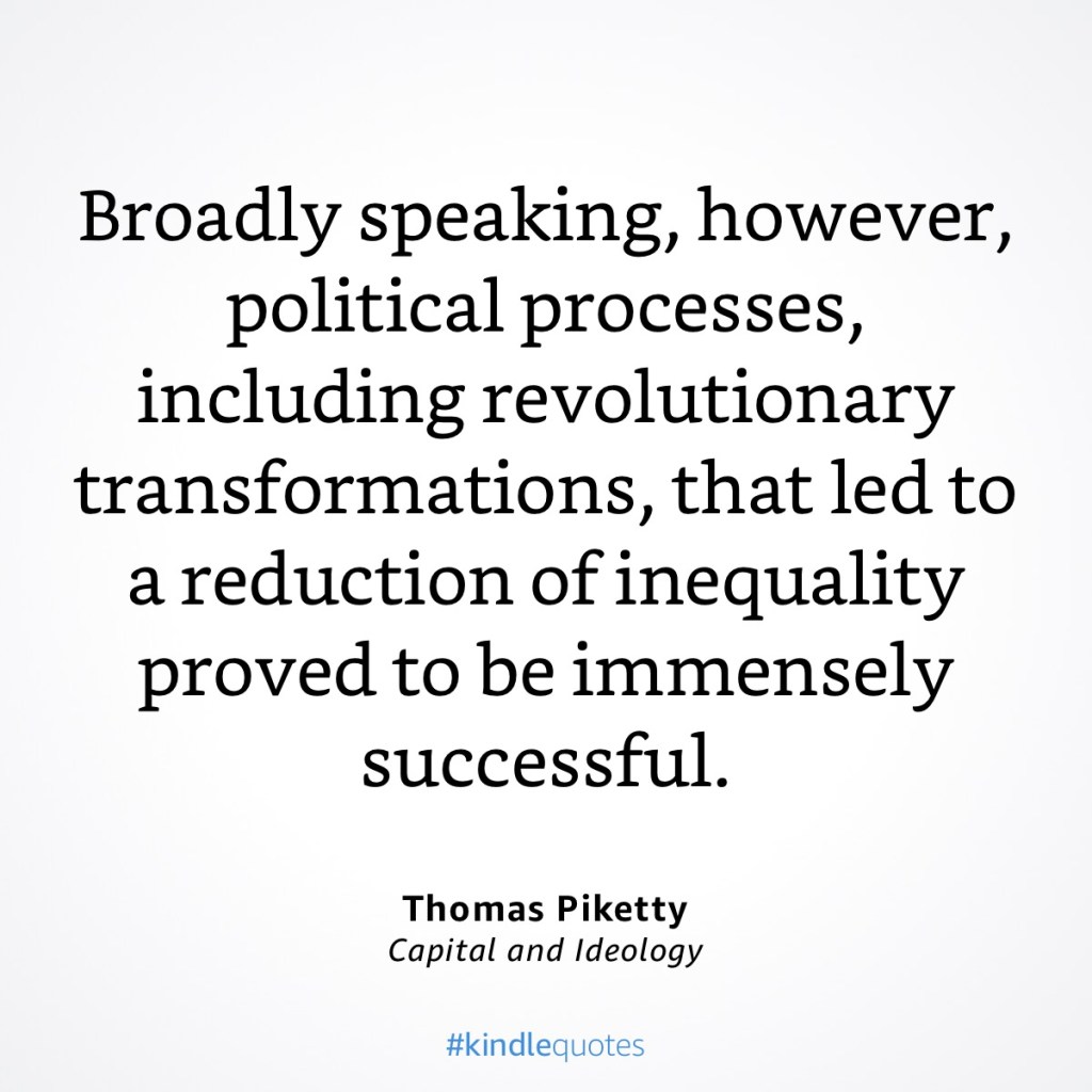 - Piketty makes the point that if society can’t sell its citizens on going along with a given kind of inequality, then that society is going to collapse. We’re seeing now the early stages of what that collapse looks like.