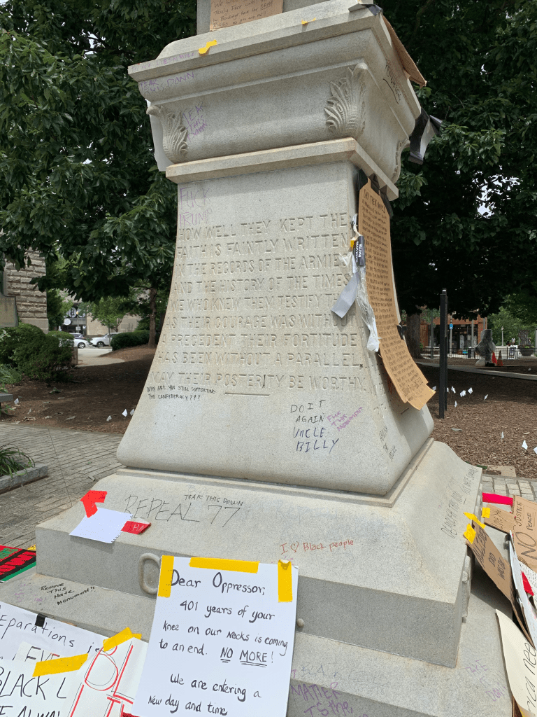 Update 6/13/2020: A judge declared the “monument” a public nuisance, allowing the process of removal to begin. Another brick of racism demolished, so many more to remove before the whole thing crumbles. It’s a step in a long journey