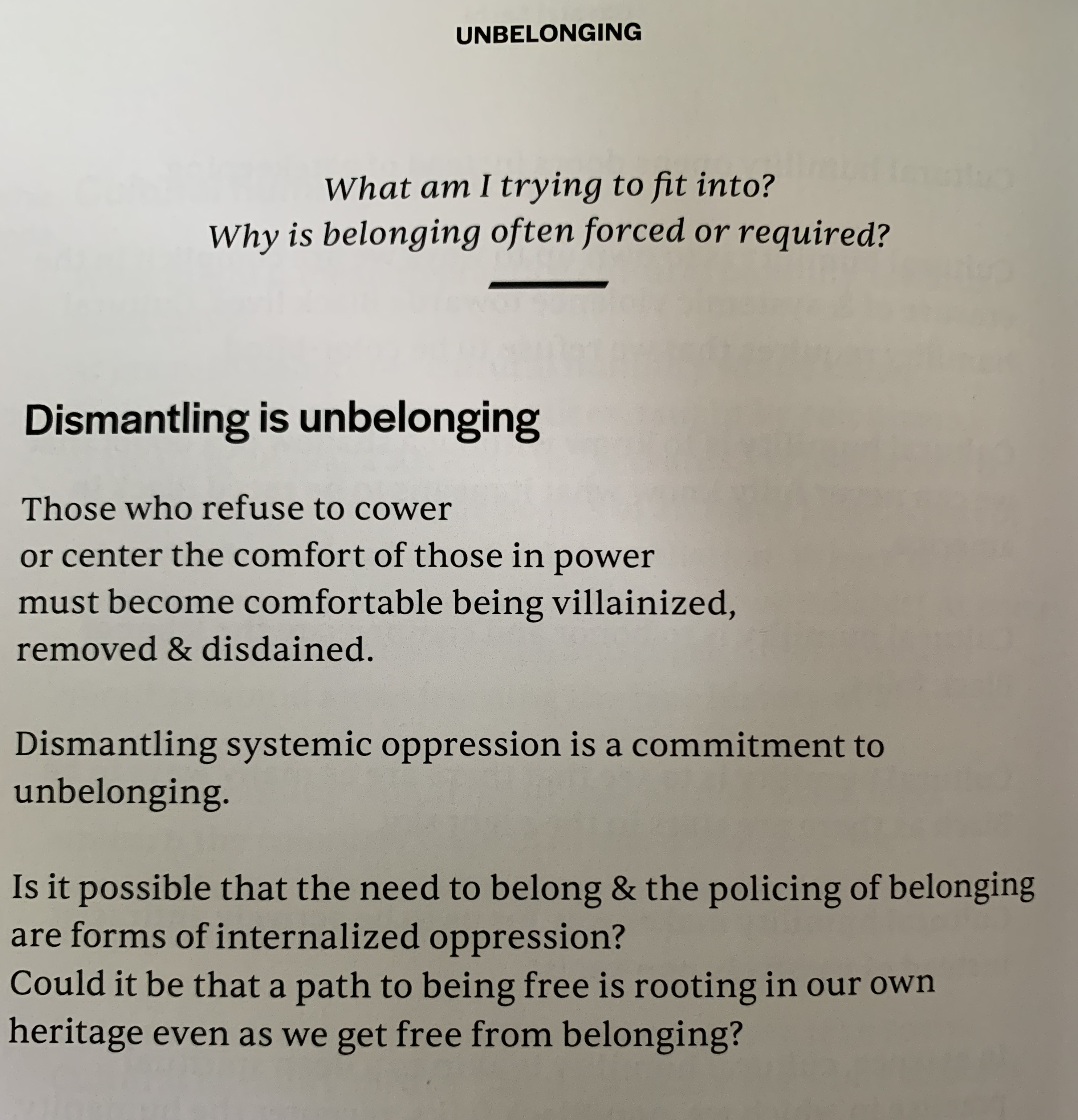But what does it mean to then to un-belong, when belonging is so central to existence?