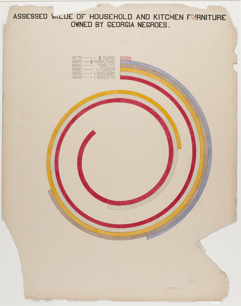 Dr. DuBois’s innovations in data visualization are still worth studying for their clarity and expressiveness. I’m including below three info graphics that he and his students created — it’s ok to get lost in the full online collection at the Library of Congress